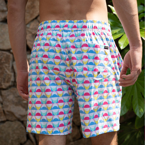 Grab a drink with your sunglasses, slip on these eye-catching swimming trunks and soak up some island time. These swim shorts with 3 pockets and breathable net padding make jumping into the water cooler and easier!
